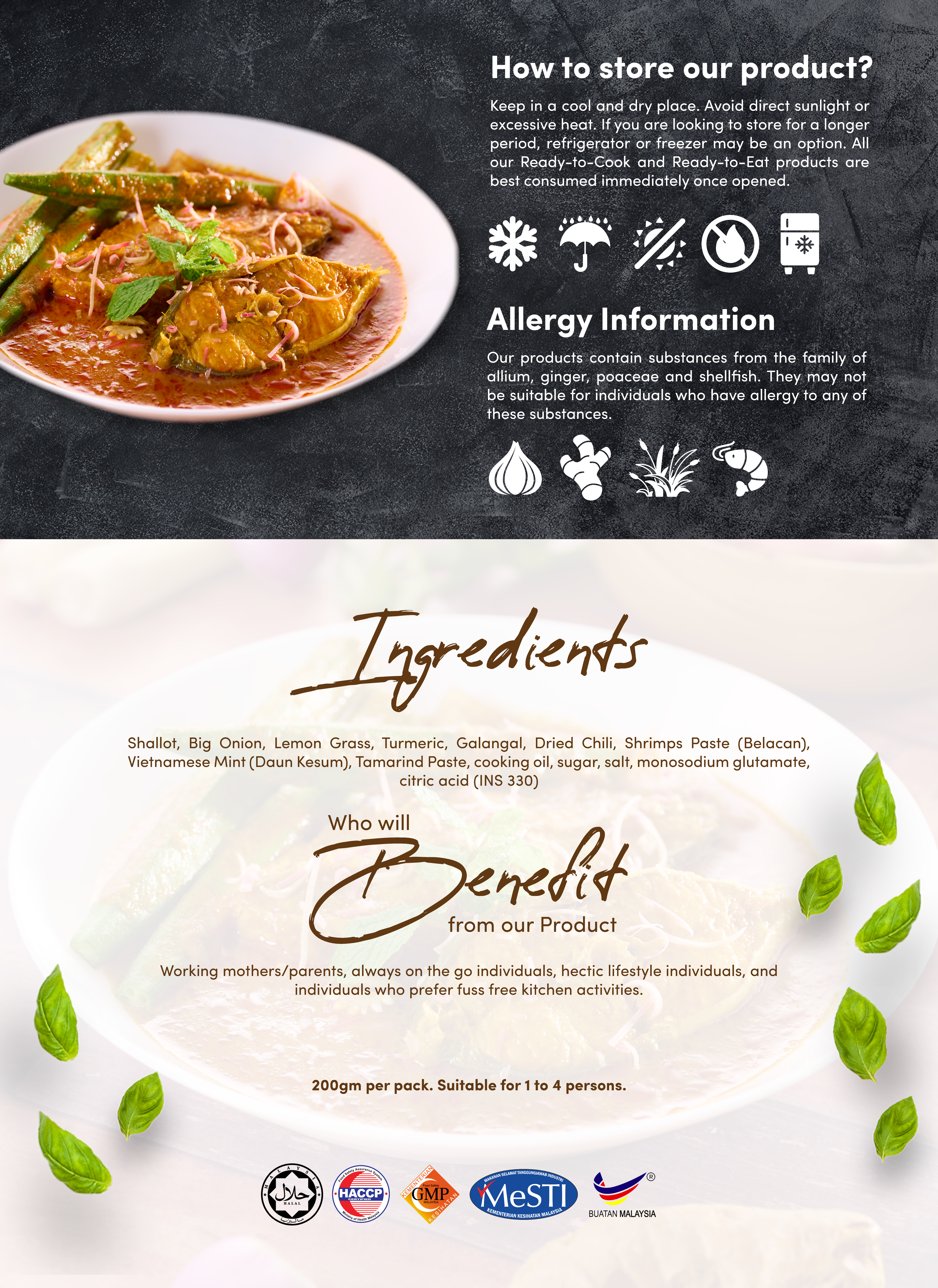 Delight in the rich, aromatic flavors of Gulai Tumis with our ready-to-use paste. A blend of spices, herbs, and coconut milk, it’s perfect for creating a creamy, flavorful curry with meats or vegetables. Convenient, preservative-free, and packed with traditional taste.